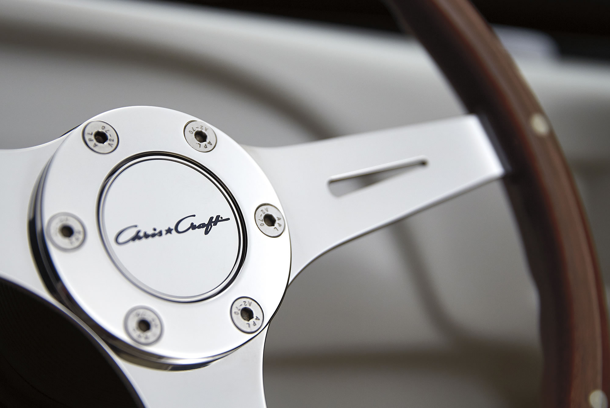 Part of the pleasure of owning a Chris-Craft is exploring the beauty – and practicality – of all the details within it. Striking in form and painstakingly crafted, they enhance your daily experiences in ways you truly come to appreciate. The integrated shape of an engine airtake. The upright, weighted logo in the center of a mahogany steering wheel. The freshwater hose tucked within an anchor well. They all convey the thoughtfulness that we put into each boat.