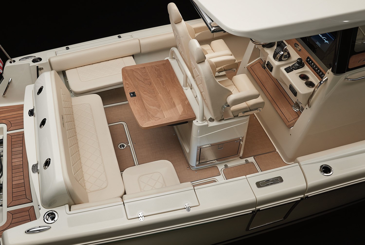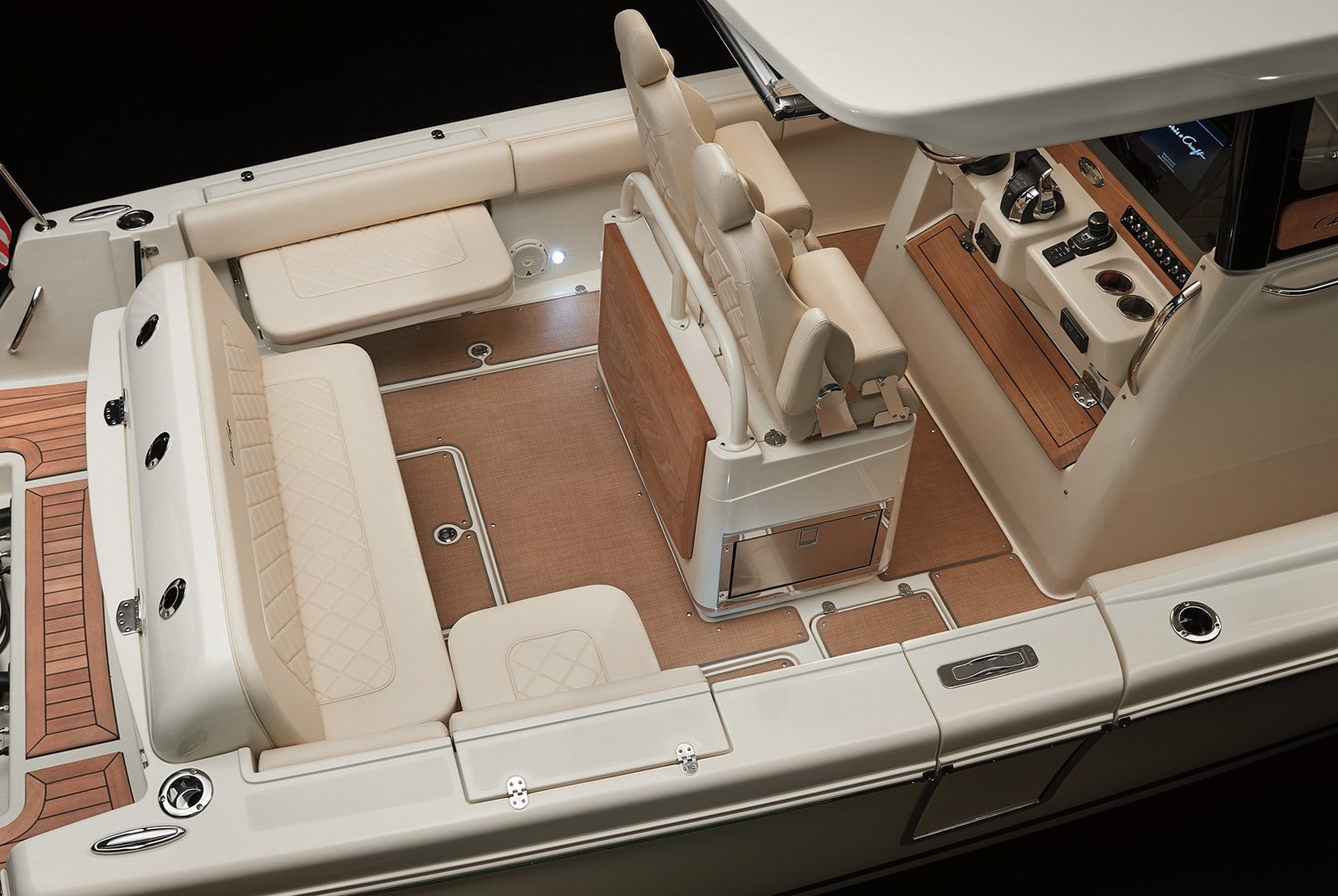 This is the essence of quality and comfort. The Pilothouse design protects passengers from the elements while providing unobstructed views in every direction, and easy movement around the entire deck. Invite 12 aboard…there’s room – and a view – for everyone.