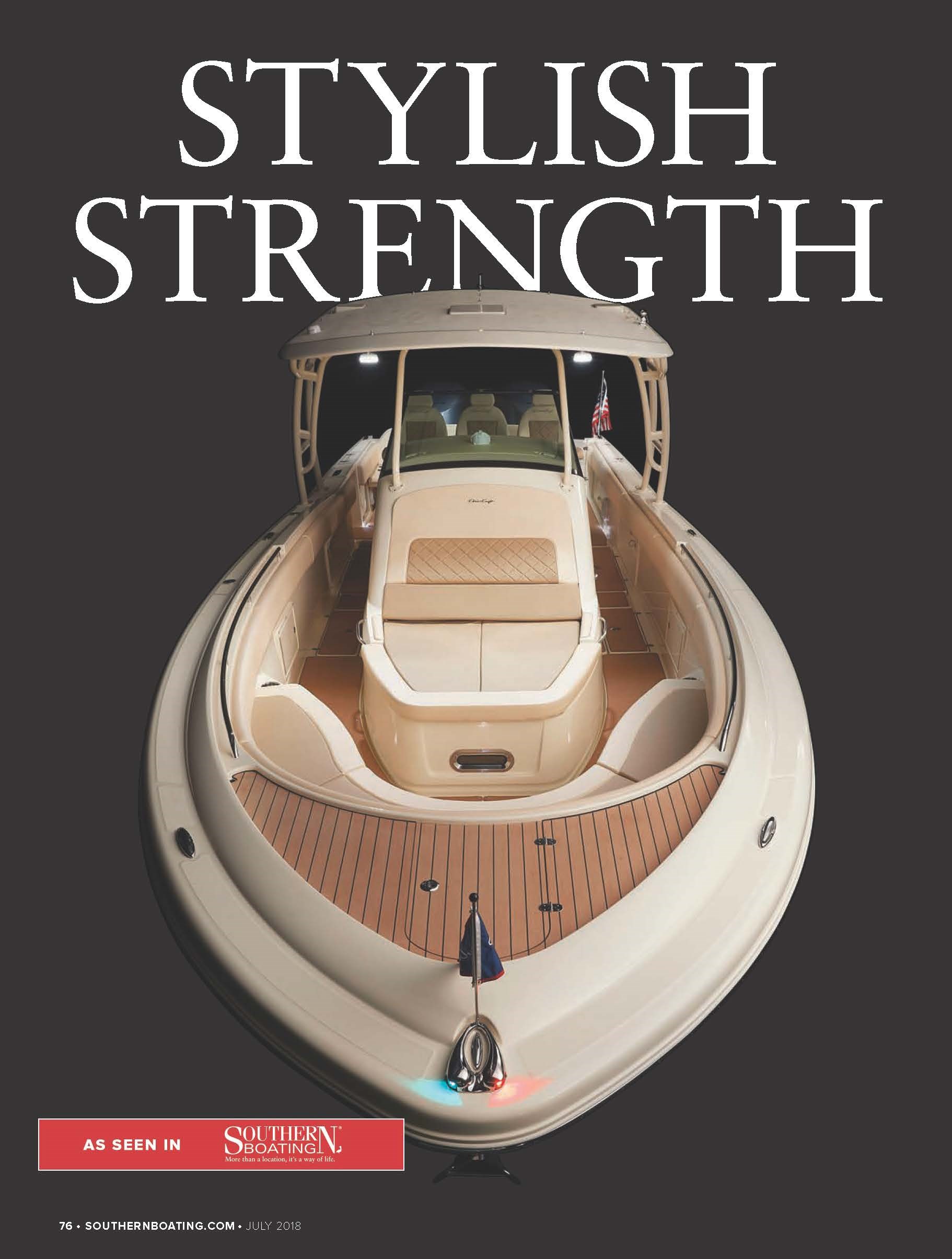 “The Chris-Craft Catalina 34 Pilothouse rides very dry on a conventional hull,” Hunt says. “The triple three-hundred horsepower engines push it to a top speed of more than sixty miles per hour. It’s got the right amount of Carolina flare, and you don’t have to worry about stuffing your nose in the following sea. It’s safe and comfortable, exactly the boat a Chris-Craft owner would expect. We’re not looking to set any speed records, but our hull is an amazing performer with a perfect combination of speed and handling attributes.”